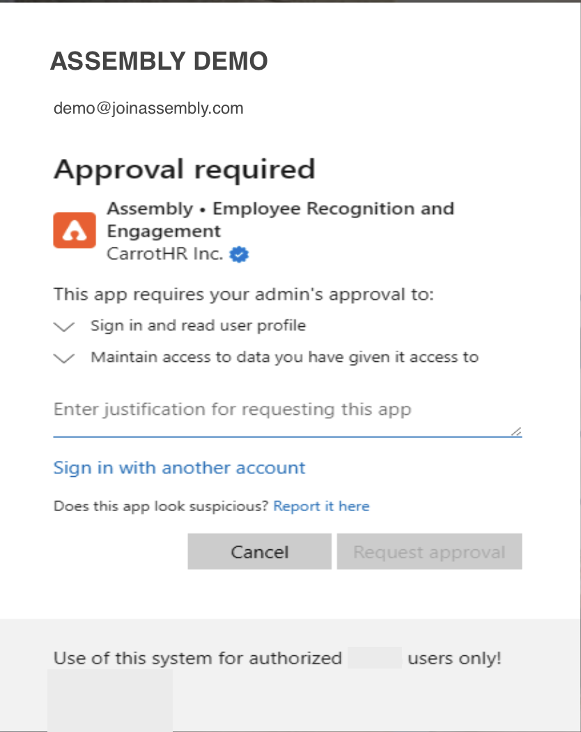 Only admins can install and connect their Assembly account to Microsoft Teams