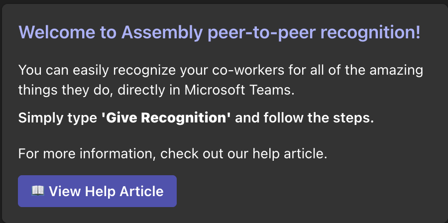 All employees who are a part of your Assembly will be able to give recognition and use Assembly directly in Teams