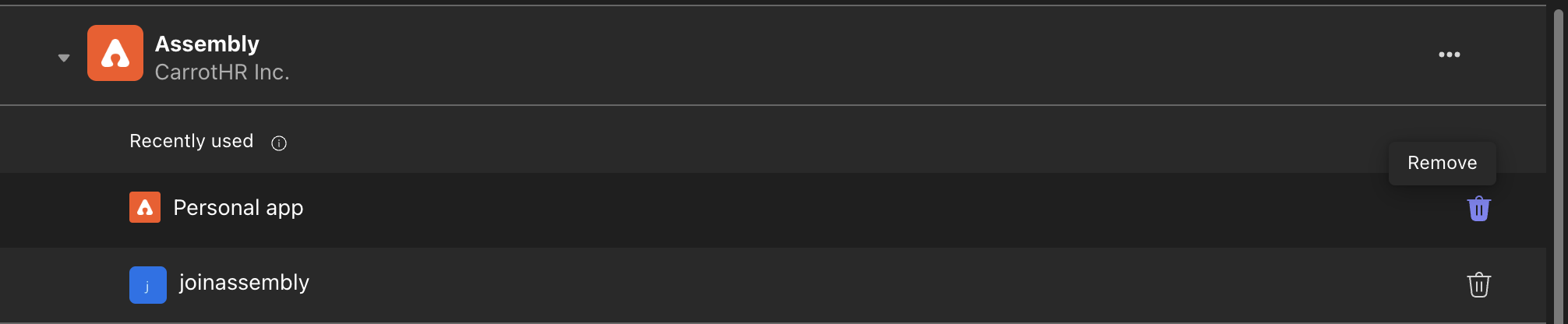 Find the Assembly application and delete/remove it from all places where it has been added