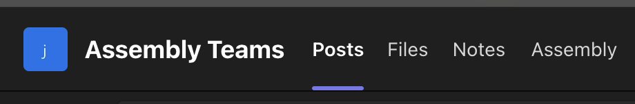 Every single user will see Assembly appear under the ‘Chats’ section. This will contain a ‘Chats’ tab and the embedded ‘Assembly’ tab. The chat tab is unique to each individual person and is not a shared chat.