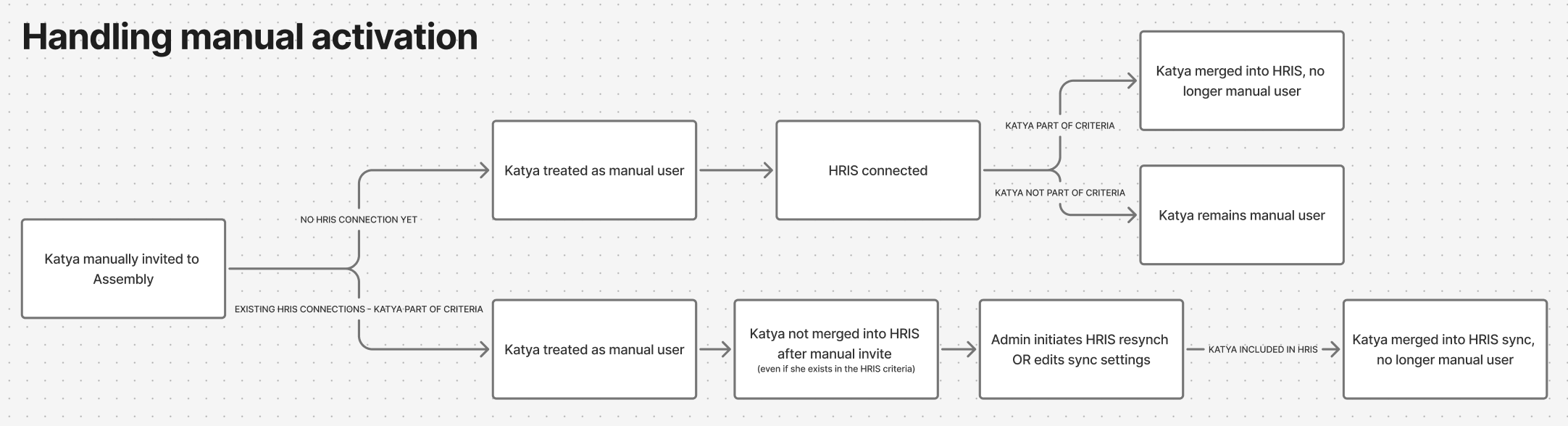 If you manually invite someone to Assembly and then connect to an HRIS, if that employee is a part of the connected group(s) then they will be synched with the HRIS.